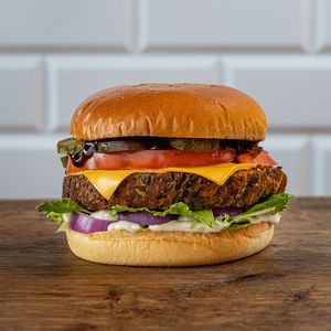 180 gramów wołowiny, ser cheddar, sałata lodowa, ogórek kwaszony, czerwona cebula, pomidor, marynowana papryka jalapeno, sos limonkowy, sos ostry, sos BBQ